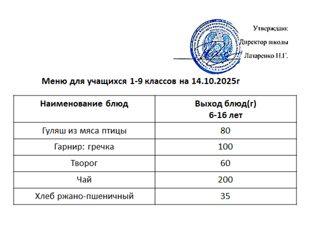 Тамақтану кестесі 2025-2026