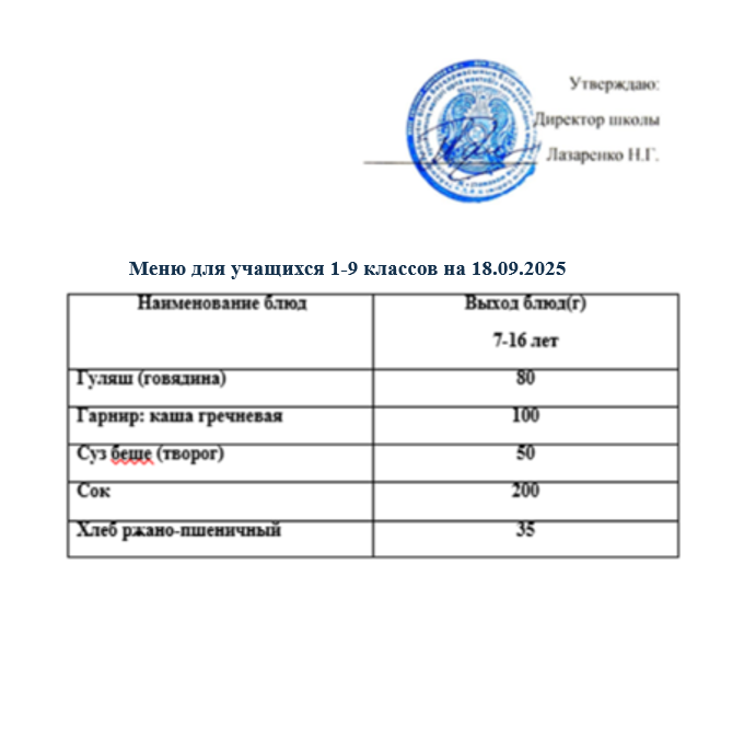 Мәзір (тағамдардың суреті) 2025-2026