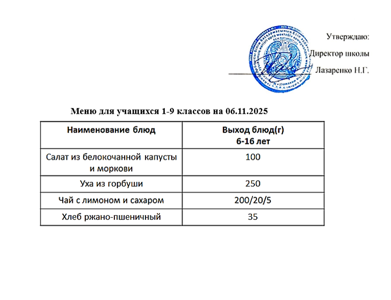 Мәзір (тағамдардың суреті) 2024-2025